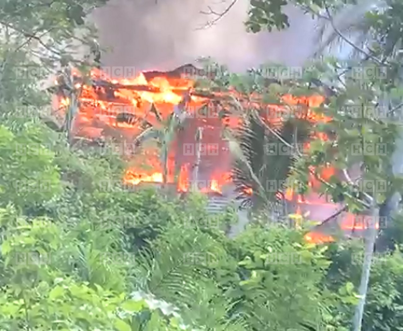 Un voraz incendio arrasa con una vivienda en la localidad de Coxen Hole, municipio de Roatán, departamento de Islas de la Bahía.