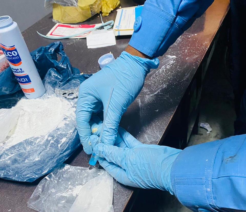 Cortés. 26 de septiembre de 2023. -La Policía Nacional, a través de la Dirección Nacional de Servicios Policiales Fronterizos (DNSPF), con apoyo de agentes de la Dirección Nacional Policial Antidrogas (DNPA), decomisaron una encomienda conteniendo supuesto clorhidrato de cocaína.