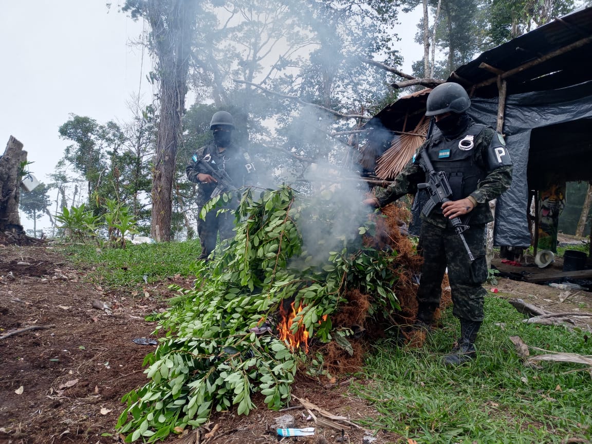 La Policía Militar del Orden Público, en el marco de la Operación Nacional Plan de Seguridad Solución Contra El Crimen, realizaron la erradicación e incineración de siete manzanas de arbustos de hoja de coca, siendo un conteo aproximado de 63,000 arbustos de este alucinógeno,