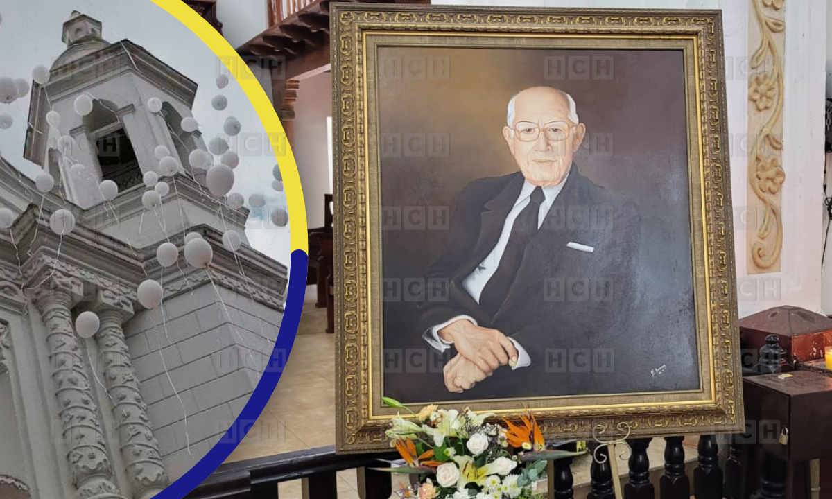Tras terminar la misa solemne soltaron globos blancos hacia el cielo en señal de reverencia y celebrando lo que fue la vida de don Jorge Bueso Arias.