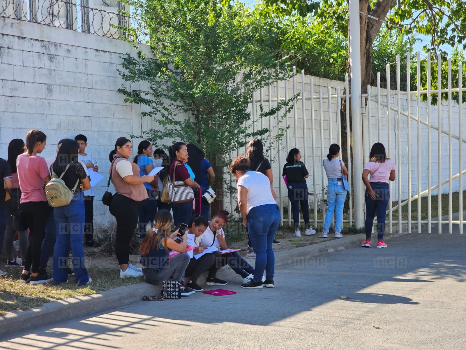 En las afueras de esta empresa un grupo de hondureños están a la espera de ser atentidos en busca de una oportunidad laboral.