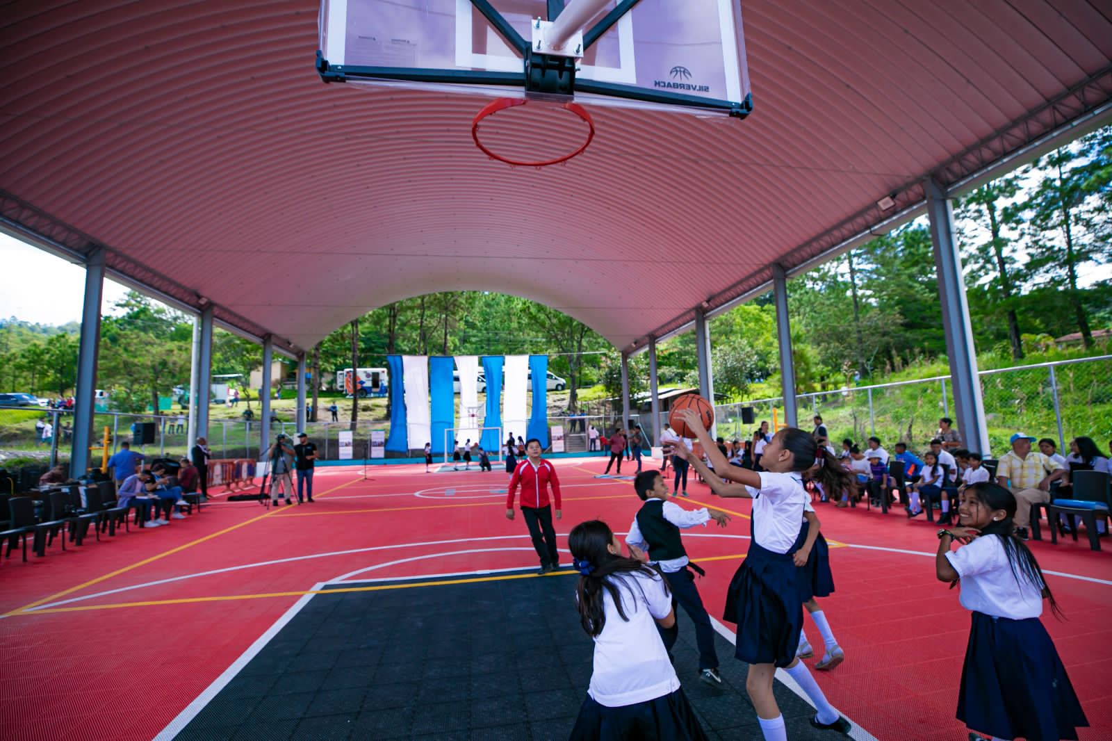 Este día la presidenta Xiomara Castro inauguró una cancha de usos múltiples en Chinacla, La Paz.