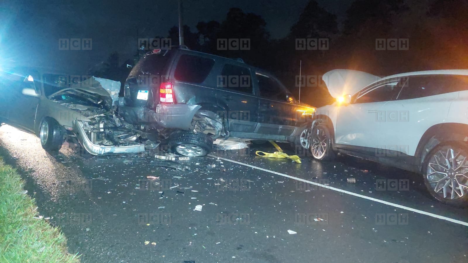El accidente se dio a la altura del kilómetro 9 donde tres vehículos chocaron dejando varias personas heridas, según informaciones dos vehículos se estaban pasando carga cuando un tercero vino a impactarlos.