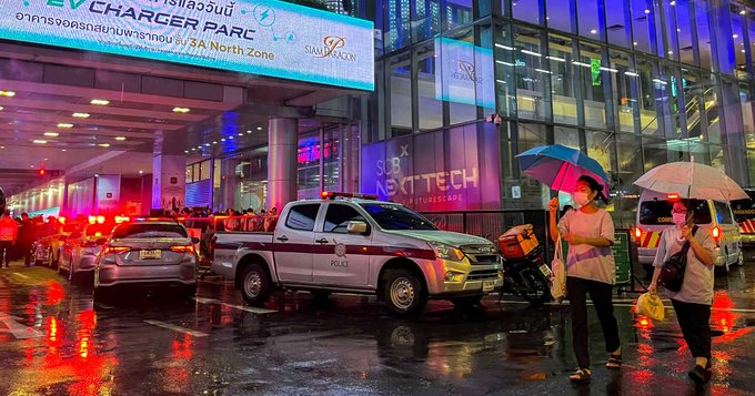El Departamento de Detectives de la Policía Metropolitana dijo en su página de Facebook que un joven de 14 años había sido detenido y estaba siendo interrogado por el ataque en el centro comercial Siam Paragon. Los servicios de emergencia compartieron una imagen de un agente de policía deteniendo y esposando a un individuo tendido boca abajo en el suelo.
