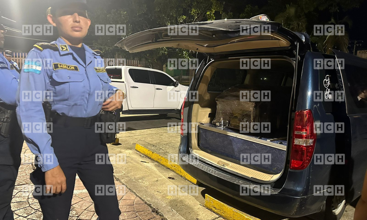 Los restos mortales de los dos policías que fueron emboscados y asesinados en Santa Rosa de Aguán, Colón, fueron retirados esta noche de la morgue de San Pedro Sula.