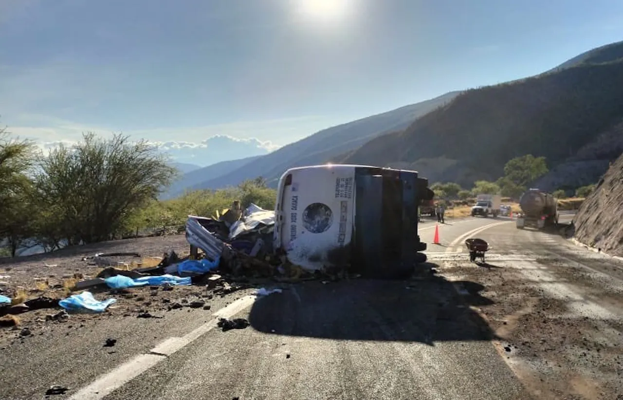Las imágenes publicadas por las autoridades en Facebook muestran el gran autobús volcado y gravemente dañado en un tramo con curvas de la carretera montañosa.