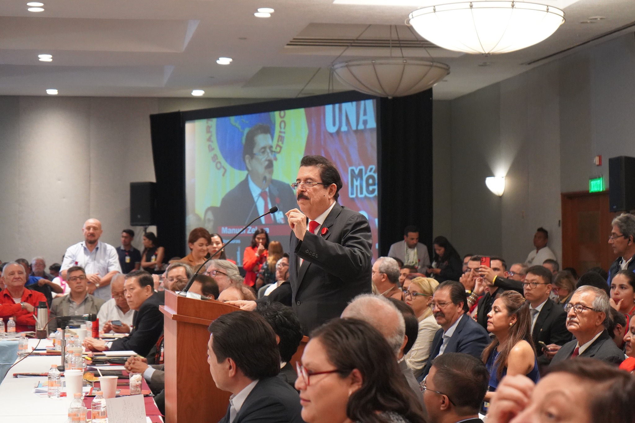 El expresidente de Honduras Manuel Zelaya Rosales participó en el XXVII Seminario Internacional de Los Partidos y la Nueva Sociedad.