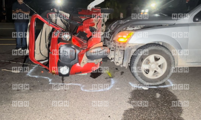 Un fuerte accidente vial tipo colisión entre una Mototaxi y una camioneta se produjo en la comunidad de El Bambú, Santa Cruz de Yojoa.