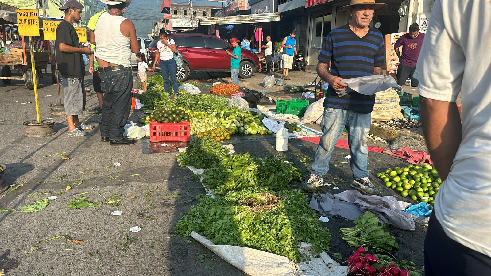 Los comerciantes se ubicaron en el mercado para vender aguacates, limones y diferentes verduras frescas.