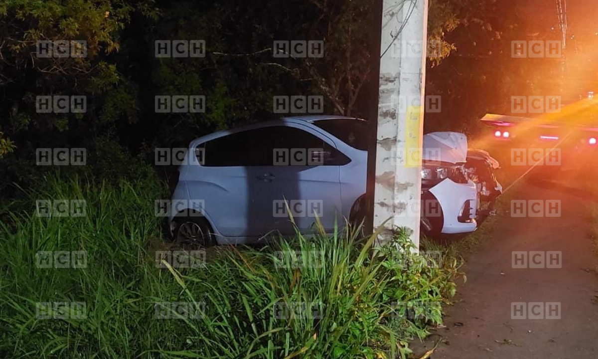 En el anillo periférico a la altura de la colonia Los Laureles, un vehículo tipo turismo impactó contra un poste de concreto.