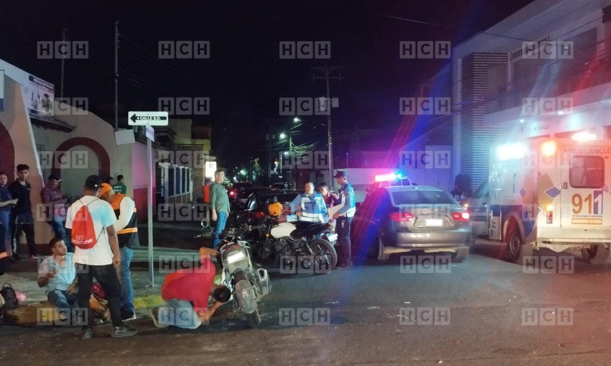 En un accidente vial en el barrio El Benque de San Pedro Sula, dos personas salieron heridas.