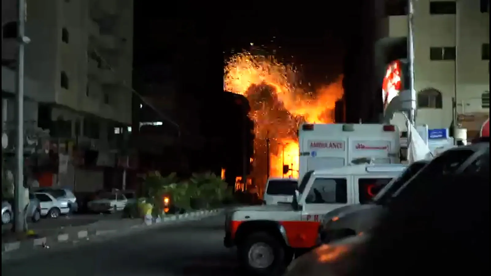 La Media Luna Roja Palestina difundió también un video que muestra el impacto de una de las explosiones cerca del hospital.
