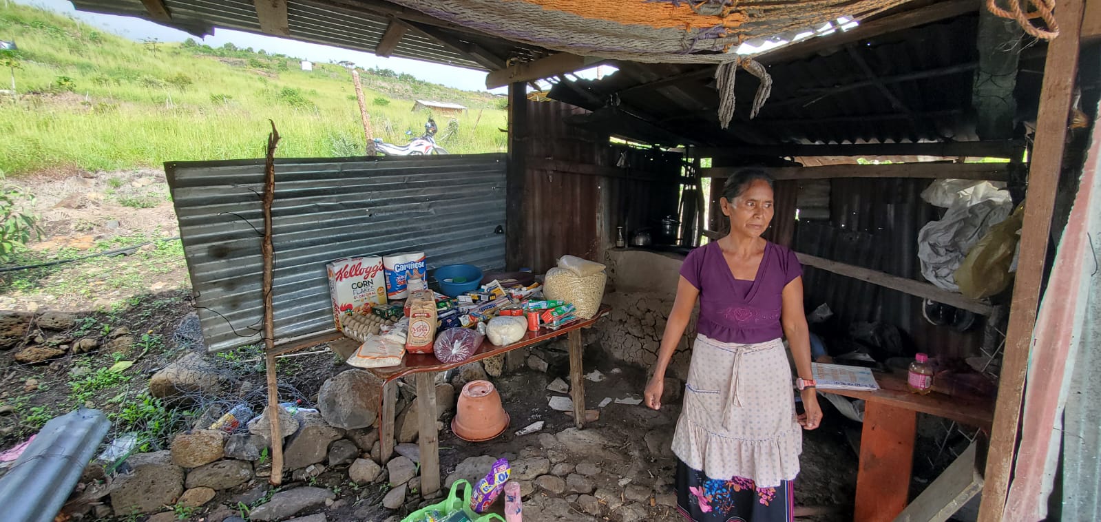 Doña Marcelina recibió maíz, arroz, frijoles, azúcar, pastas, huevos y otros productos con los que podrá preparar platillos de comida dignos.