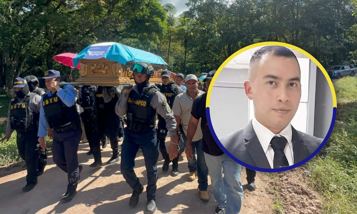 Autoridades de la Policía Nacional dan el último adiós al agente de investigación de DIPAMPCO que murió en enfrentamiento con delincuentes en Comayagua