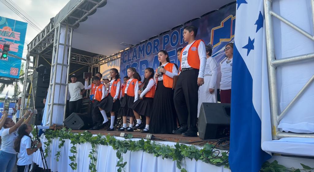 Cientos de niños e iglesias evangélicas oran en las calles sampedranas por la paz de Israel, ante los ataques del grupo Hamás.