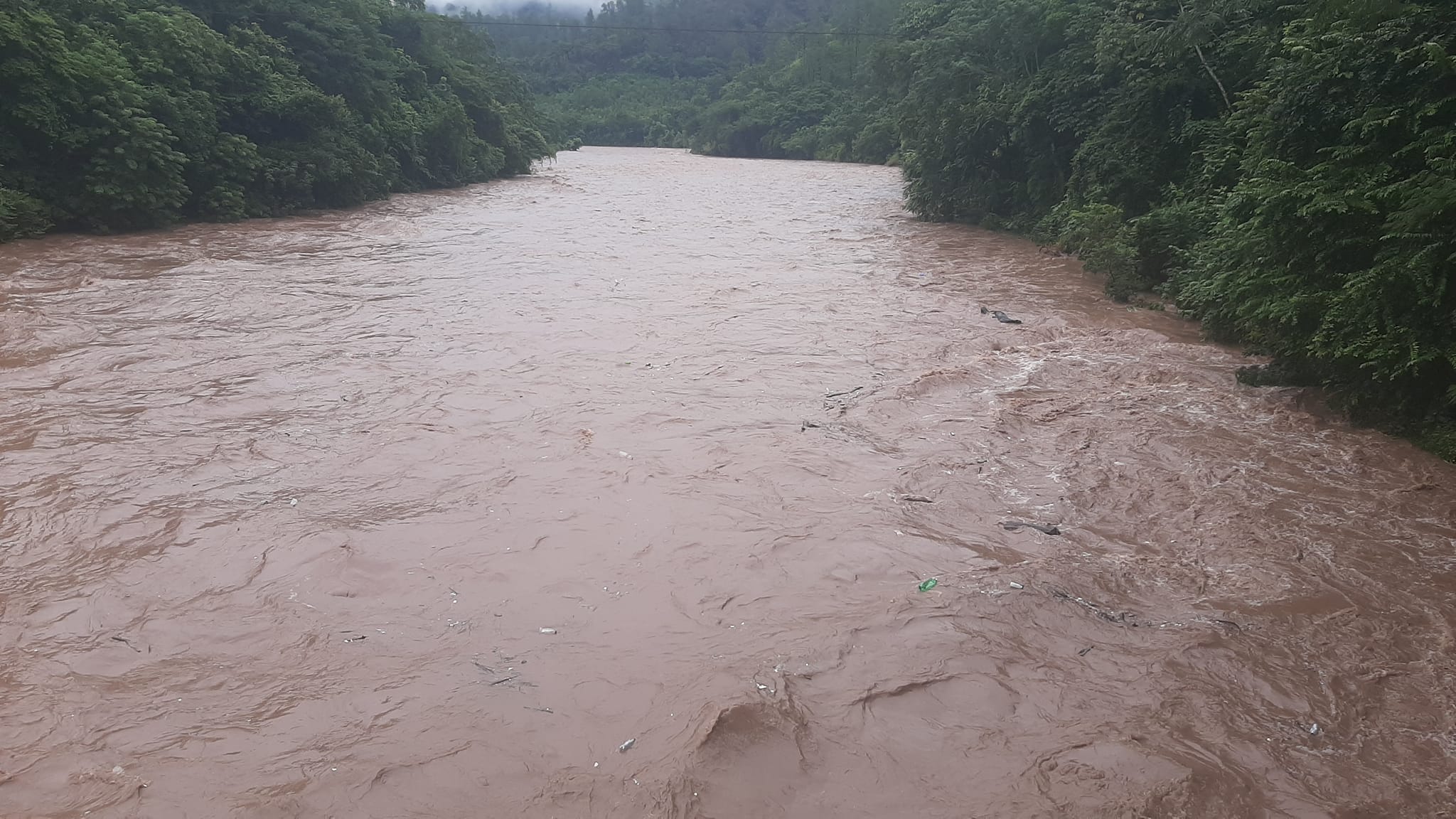 Miembros del Benemérito Cuerpo de Bomberos realizan inspección al caudal del río Humuya, en Comayagua, el cual presenta un aumento significativo.