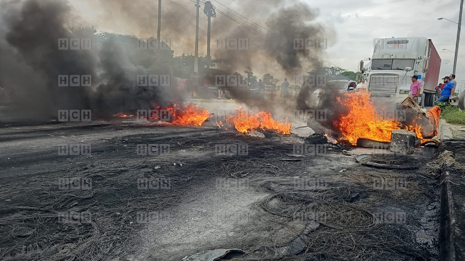 Pobladores que viven en los bordos de Esquipulas y Bográn mantienen protesta con quema de llantas en la carretera a la altura del segundo anillo de San Pedro Sula, zona norte de Honduras, en resistencia a desalojos.