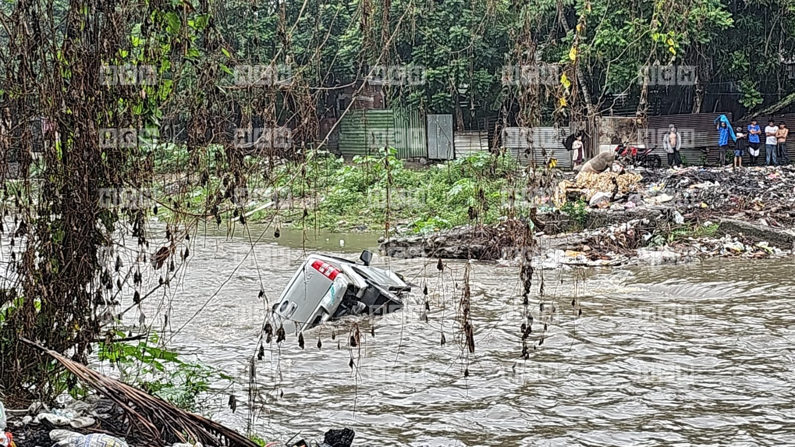 El conductor de un vehículo estuvo a punto de morir ahogado en el río Bermejo a la orilla del bordo Los Naranjos en San Pedro Sula, al norte de Honduras.