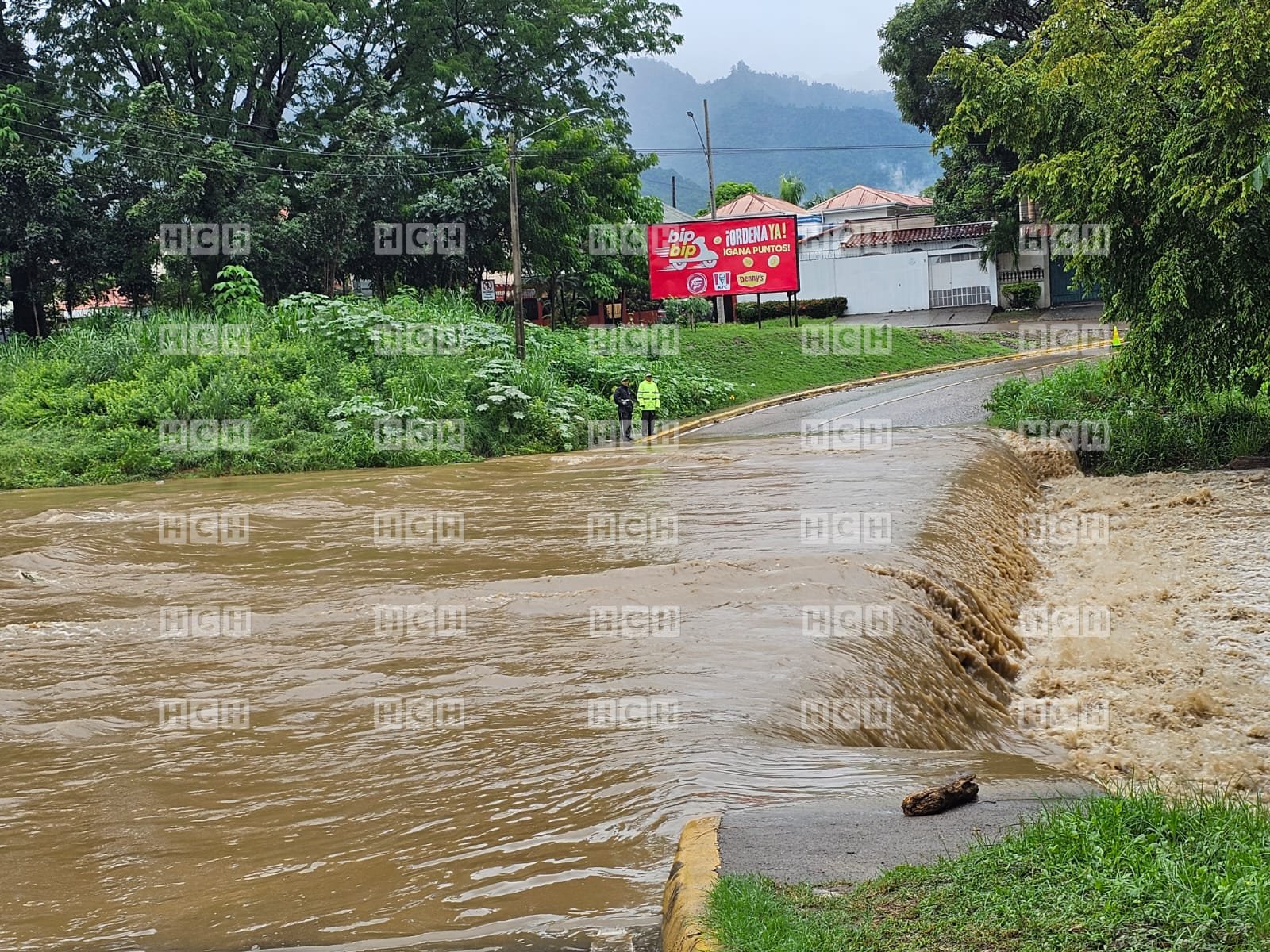 Por desbordamiento en el río de Piedras a la altura de la colonia Colombia en San Pedro Sula cierran acceso a la plancha que cruza dicha colonia, al norte de Honduras.