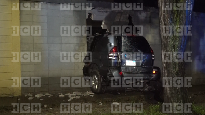 Un conductor completamente perdido se estrelló contra uno de los muros perimetrales de una institución educativa en San Pedro Sula.