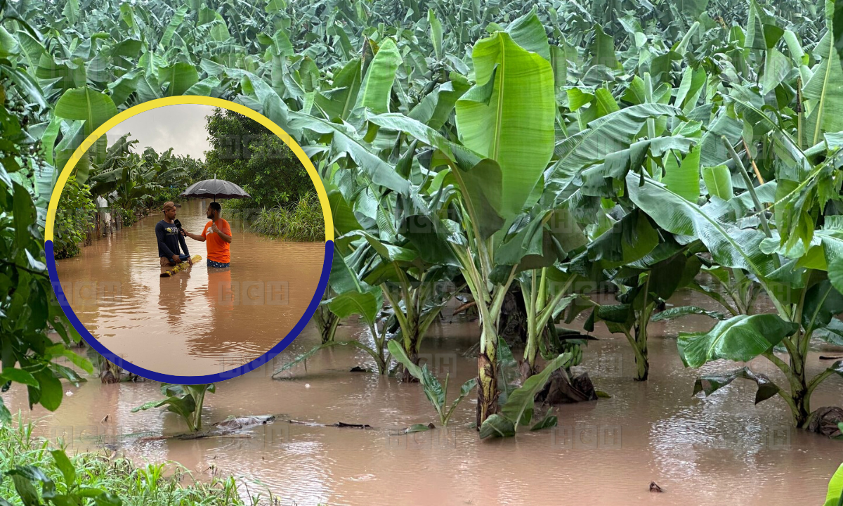 Unas 30 manzanas de Finca, son las que reportan millonarias pérdidas debido a las extremas inundaciones que han dejado cubiertas de lodo las plantaciones.