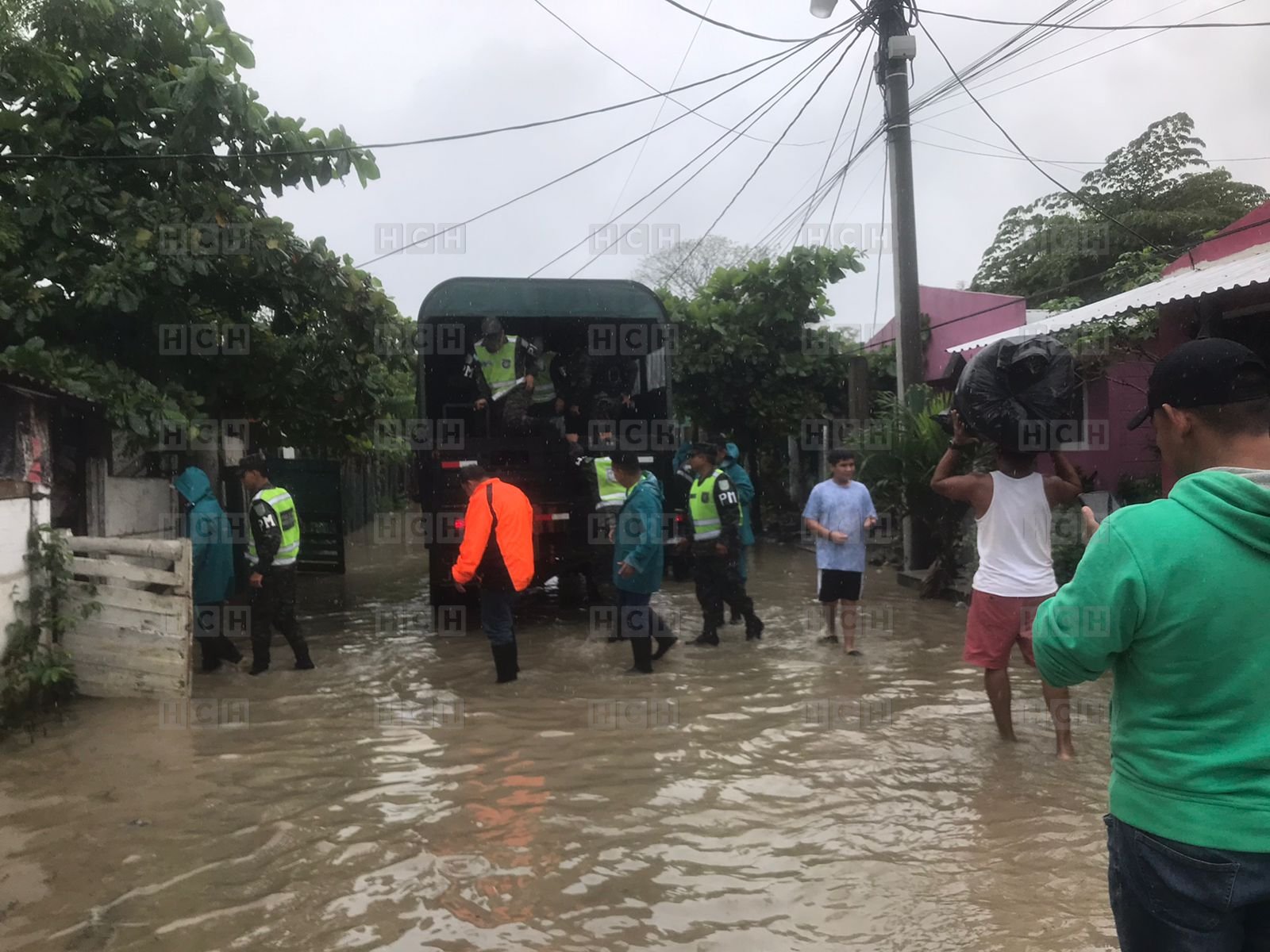 Pobladores de varios sectores de Choloma abandonan sus viviendas debido a que el agua ya les llega a las rodillas producto del desbordamiento de quineles.
