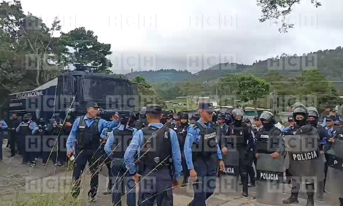 Un contingente de la Policía Nacional llega a ejecutar un desalojo en Marcala, La Paz.