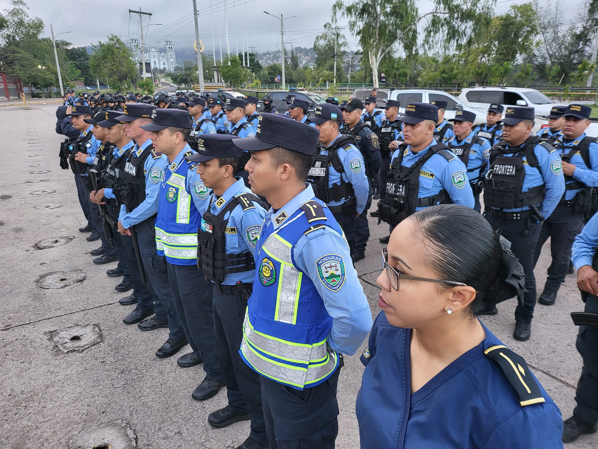 Un fuerte contingente policial está a la espera de dar resguardo a la movilización que realizarán en el bulevar Suyapa.
