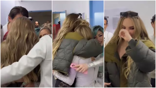 Después, la intérprete de Dopamina saludó a Ramiro Torres (Cómplices al rescate) con un fuerte abrazo. y justo cuando se disponía a continuar con los saludos soltó algunas lágrimas. Fue en ese momento cuando todos los actores decidieron darle un abrazo grupal.