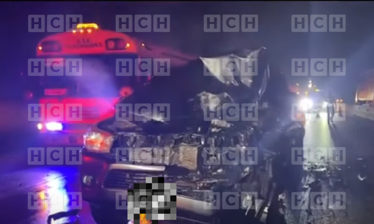 Un hombre que se conducía en un vehículo tipo pick-up chocó contra un bus en el peaje de Santa Cruz de Yojoa.