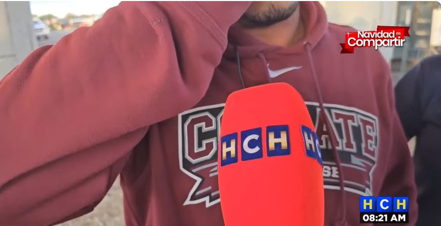 Migrante hondureño llora frente a las cámaras de HCH en su cobertura especial en McAllen, Texas y cuenta que huyó del país a consecuencia de las amenazas que sufría por estructuras criminales que le quemaron su vivienda en San Pedro Sula.