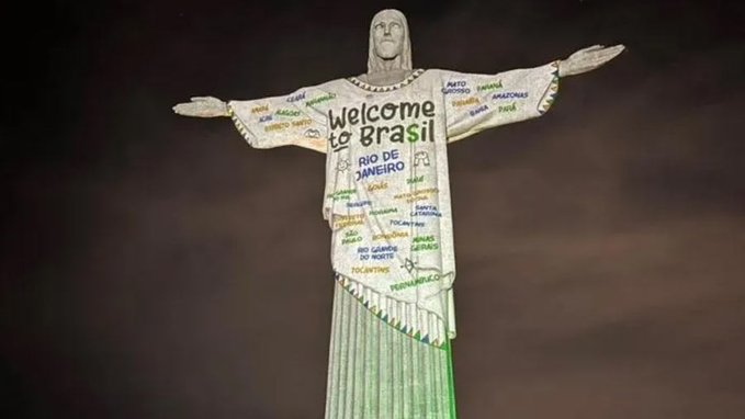 La cantante estadounidense Taylor Swift fue recibida este jueves en Río de Janeiro por un Cristo Redentor iluminado con un mensaje en inglés de bienvenida y los nombres coloridos de los 27 estados de Brasil.