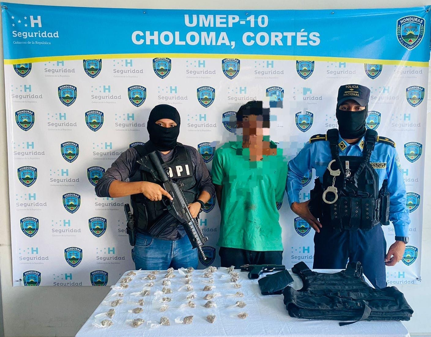 Mediante un trabajo coordinado entre agentes la Dirección Nacional de Prevención y Seguridad Comunitaria (DNPSC) de la Dirección Policial de Investigaciones (DPI), le dieron en las últimas horas, a un ciudadano en posesión de una arma de fuego, droga, y un chaleco antibalas.
