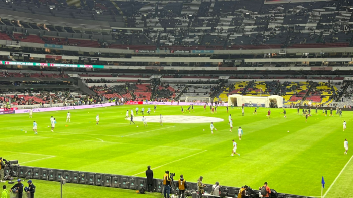 En un estadio con muchos espacios vacíos los aztecas y catrachos salieron a calentar en una cancha donde se escuchaba más el sonido ambiente que los aficionados que asistieron al partido.