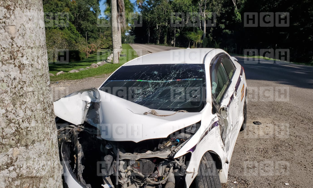 En el hecho salió lesionado el conductor identificado solo como Darwin, segun informacion el conductor del taxi fue a impactar a una palmera despues de chocar supuestamente en la parte de atras de un microbus.