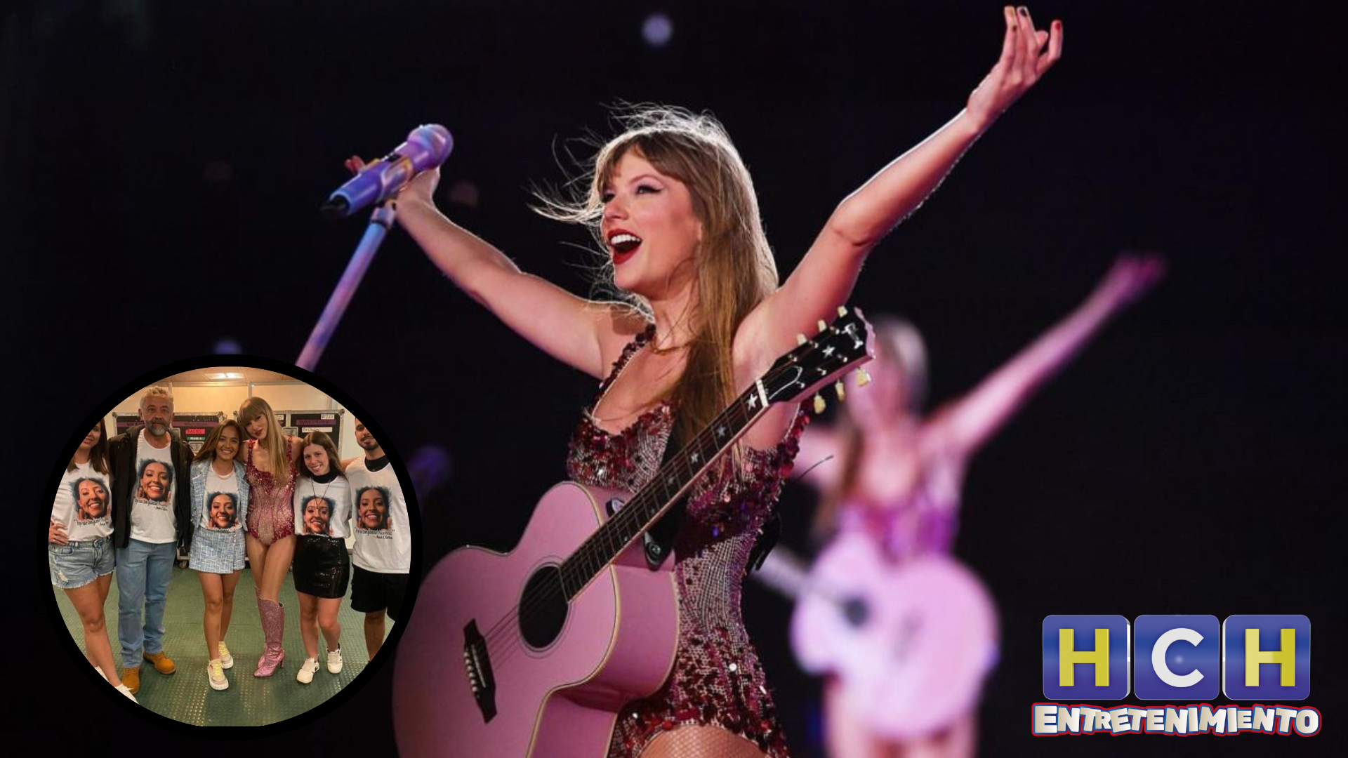 En redes sociales circulan fotografías de Taylor Swift abrazada de la familia de su fallecida fanática, quienes llevan playeras con el rostro de la joven Ana.