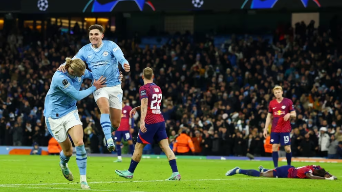 El equipo alemán se puso en ventaja con el doblete de Lois Openda y controló las acciones de la primera mitad. Pero todo cambió a los 53 minutos cuando Pep Guardiola buscó tener más peso ofensivo y sacó al defensor Kyle Walker que fue sustituido por Julián Álvarez.