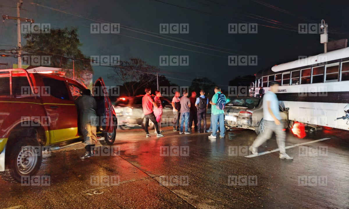 En el bulevar del sur de San Pedro Sula, se produjo un fuerte choque entre un autobús y un vehículo tipo turismo.