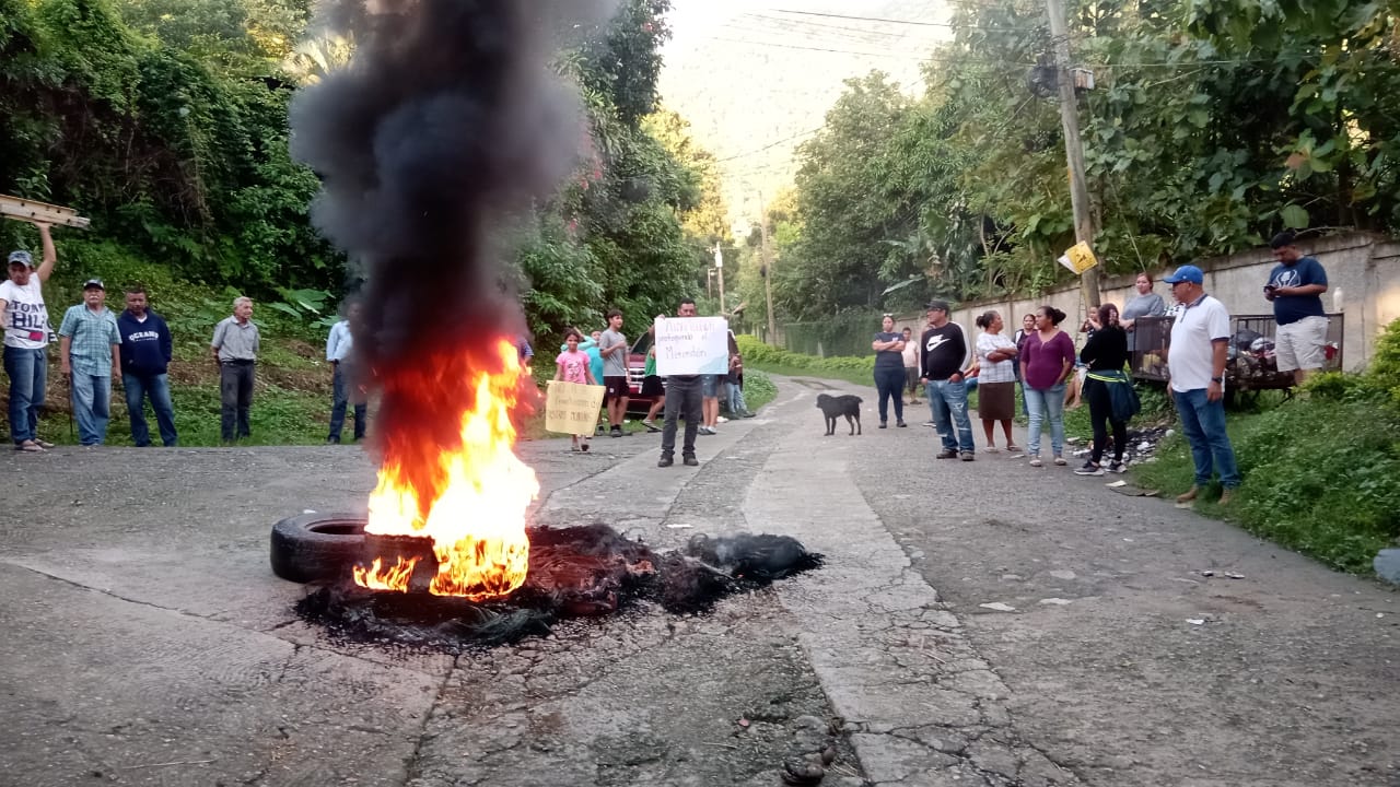 Los pobladores protestas con pancartas y quema de llantas para que no se siga talando el bosque de El Merendón para instalar proyectos habitacionales.