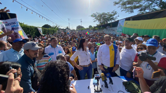 Machado se refirió al conflicto territorial de Venezuela con Guyana en un encuentro con sus seguidores que sostuvo en el estado Lara y en donde afirmó que el referéndum consultivo de este próximo 3 de diciembre no tiene argumentos legales en la defensa del Esequibo.