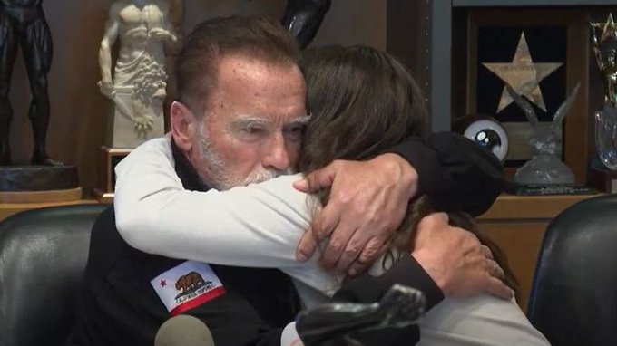 Mientras Ella hablaba, Schwarzenegger no pudo evitar derramar lágrimas, y al final se abrazó a la niña. La reunión fue organizada por el Museo de la Tolerancia de Jerusalén, con el que Arnold Schwarzenegger ha colaborado con el museo durante años.
