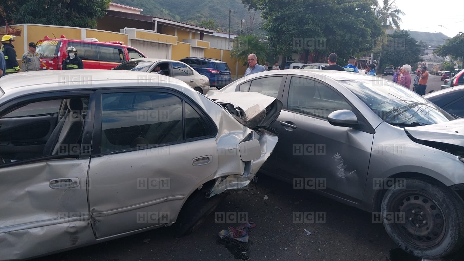 Dos personas resultaron heridas este sábado a consecuencia de una colisión entre cinco carros en colonia Loarque, salida al sur de Tegucigalpa.