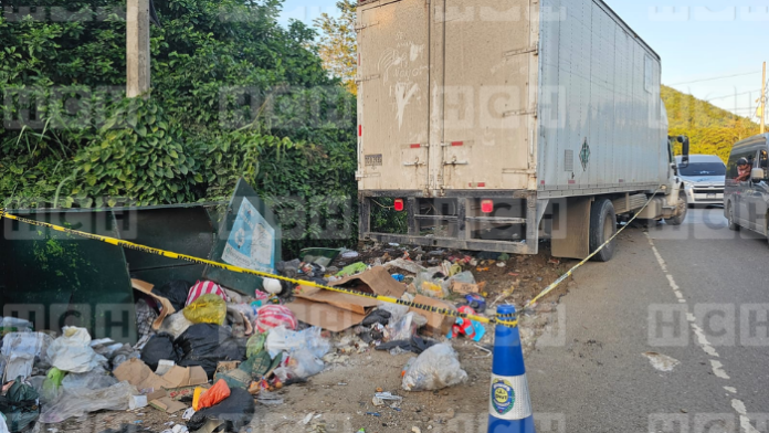 Una familia que iba en una motocicleta fue embestida por un pesado camión. Los tres familiares terminaron impactando en un contenedor de basura.