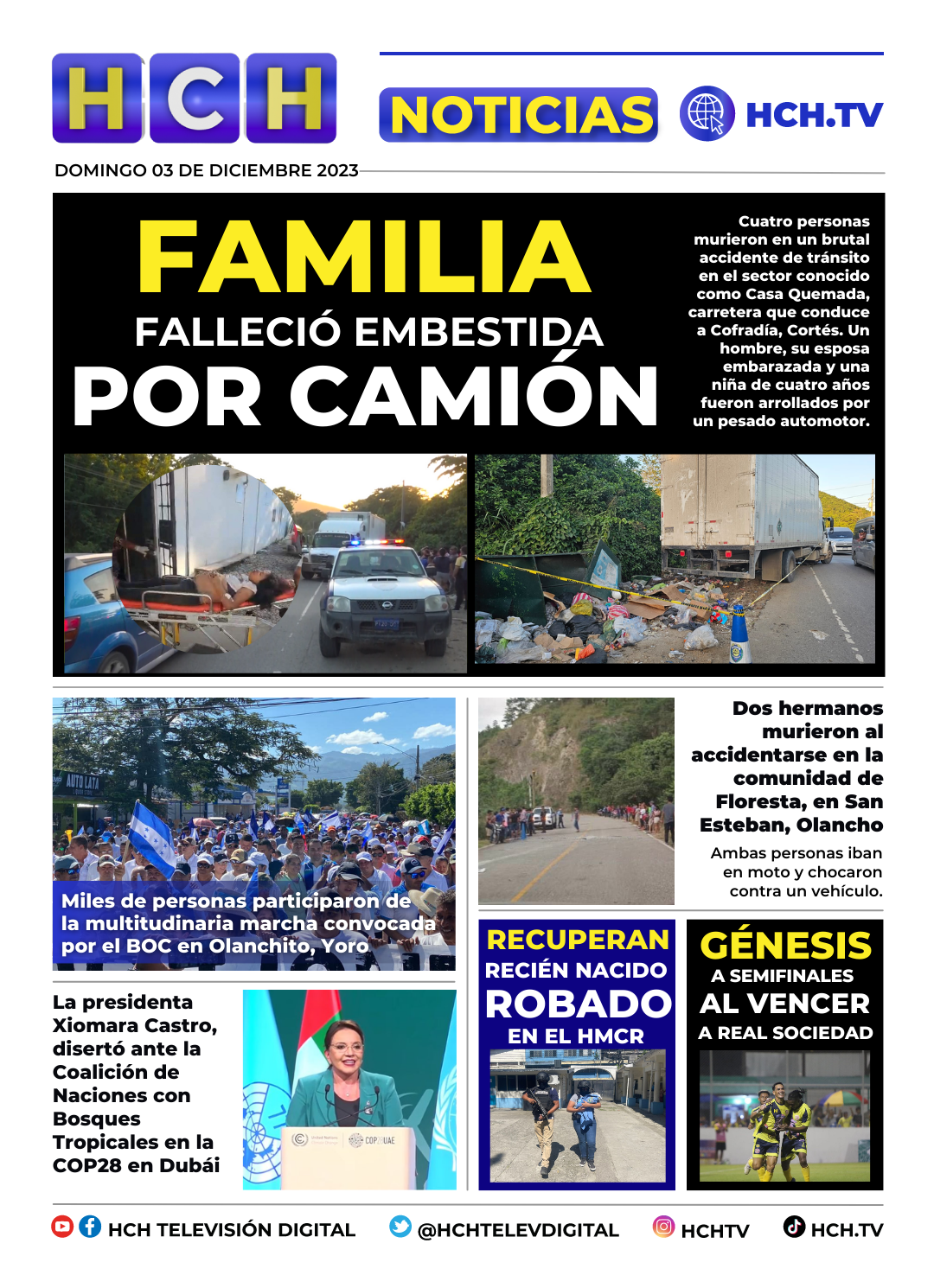 © 2025 - HCH Televisión Digital - Noticias de Honduras y el Mundo. Anillo Periférico, Complejo Empresarial Tegucigalpa, Honduras, C.A. Tel: (504) 2235-3245 / 2235-3246 / 2235-4875 / 2235-4876 LLÁMENOS GRATIS DESDE EE.UU: 3052801682 y 3052801735 © Copyright 2025 - HCH Televisión Digital. Todos nuestros contenidos están protegidos con derechos de autor.