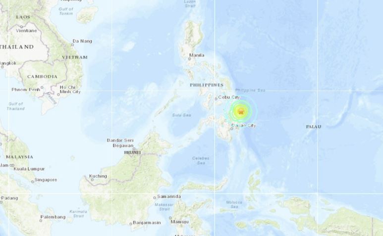 El foco sísmico estuvo localizado a 30,5 kilómetros de profundidad y el epicentro estuvo ubicado a 35 kilómetros al este noreste de Aras-asan, Filipinas, según el USGS, que también indica que a 49.1 kilómetros al oeste noroeste se ubica la población de Tandag, Caraga, Filipinas.