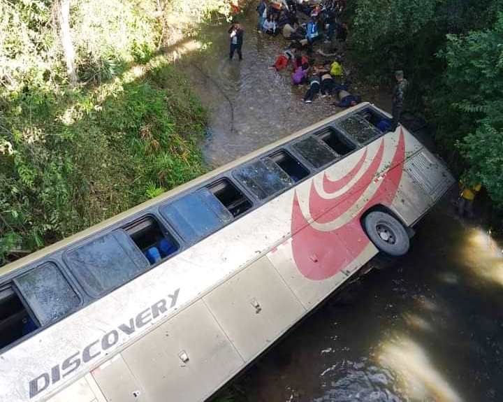 Un bus interurbano se salió de la carretera cayendo a un río y dejando varias personas heridas.