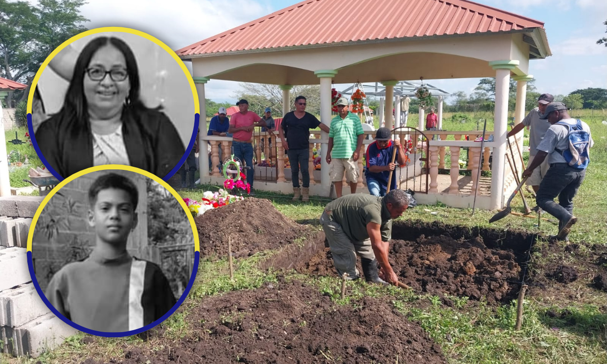 Familiares y amigos abren la sepultura donde tendrán descanso eterno la profesora Filomena y su nieto Bruno Sánchez quienes fallecieron en el accidente ocurrido en carretera hacia Olancho.