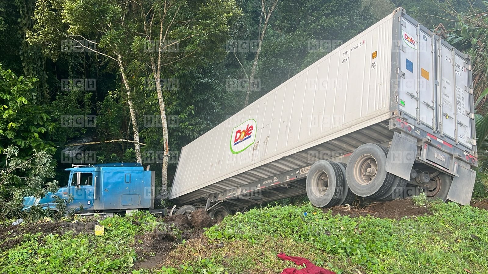 Según el chofer de la unidad móvil, el tráiler sufrió desperfectos mecánicos y tuvo que hacer una maniobra que lo llevó hasta una hondonada.