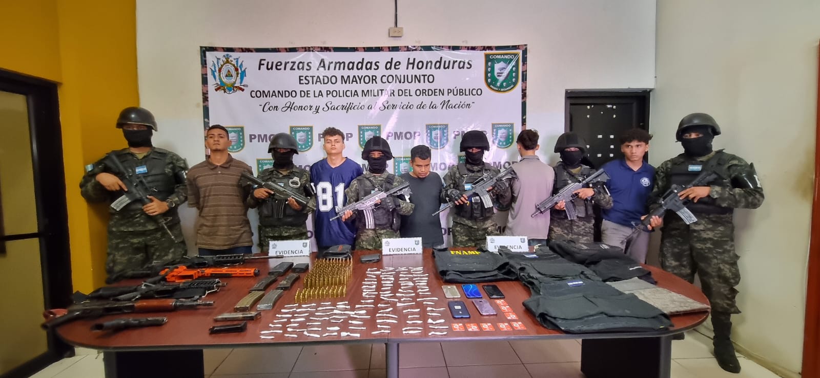 En la colonia Ebenezer de Chamelecón se ha detenido a cinco personas en posesión de armas de guerra y chalecos antibalas.