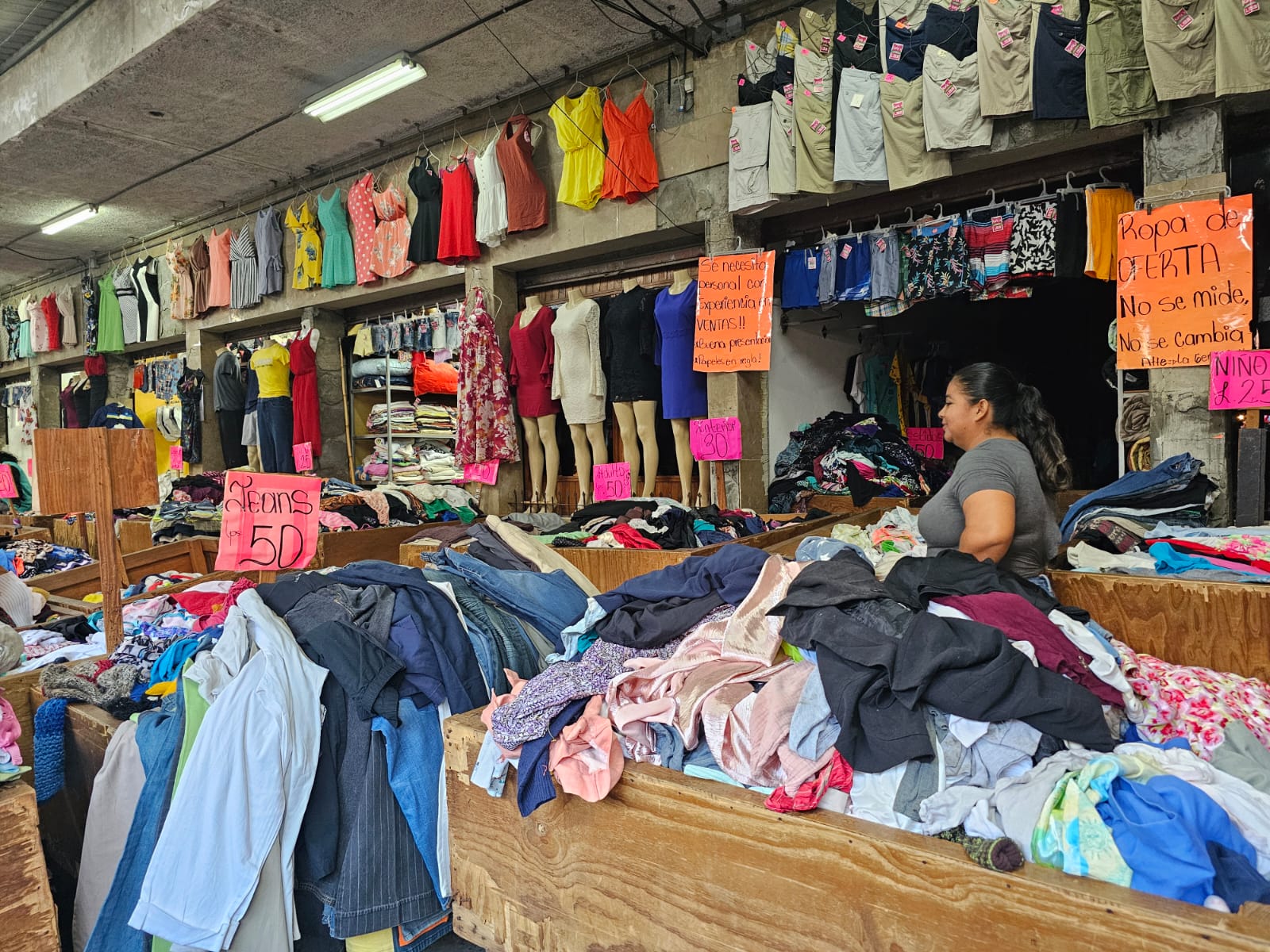 Los comerciantes ofrecen a la población pantalones, vestidos, camisetas, blusas y calzado de todo tipo a bajos precios, para que armen sus conjuntos.